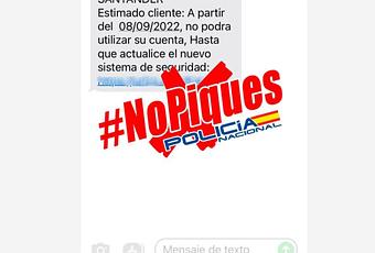 Los SMS detectados por la Policía Nacional, tienen asuntos como: "Estimado cliente su cuenta ha sido bloqueada temporalmente por movimientos sospechosos", aunque no se descarta que existan otros textos distintos.