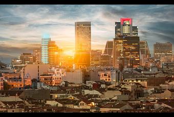 Es precisamente lo que me ocurrió con esta foto. Hacía mucho que no me sucedía eso de ver una imagen de nuestra ciudad y tardar varios segundos en reconocerla. Cuando me fijé en aquel centro financiero que brillaba ante la caída del sol pensé que se trataba de otra urbe. El novedoso punto de vista me pilló desprevenido. Al poco fui reconociendo amigos y edificios conocidos. No había duda de que se trataba de Madrid.