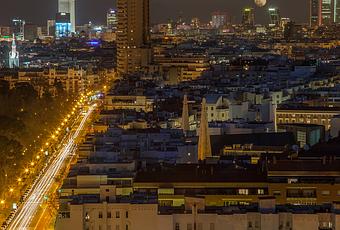 Ibiza, Recoletos, Castellana... Los barrios se suceden en esta relajante postal. Todos están allí aunque por momentos no se les perciba. Dicen que Madrid nunca duerme y esta foto lo demuestra, por mucho que lo creamos, el sueño y la oscuridad nunca llegan a conquistar esta ciudad infinita.