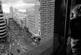Porque ese primer cara a cara tiene algo mágico que, sin que lo sepamos se nos queda grabado en el subconsciente Un misterioso baúl, sin cofre ni candados, que nos susurra al oído que salgamos a la calle para seguir recolectando experiencias, instantes, encontronazos. Quizá por lo mucho que me he visto identificado he querido traeros al blog esta bonita fotografía de Marta Pereyra. En ella vemos a un niño ensimismado, observando con atención un mundo que se le escapa, que todavía sus sentidos no le permiten entender. Pero entre ese enorme decorado, llamado Madrid, y su persona sentimos que ya ha surgido una chispa, el inicio de algo que sólo ellos dos decidirán como termina.