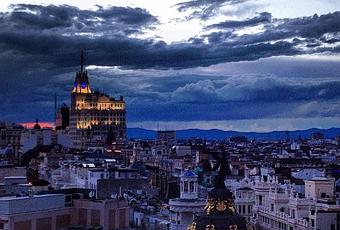 Pero por suerte, de barandillas hacia fuera el espectáculo no ha cambiado y se siguen admirando las vistas más notables de la capital. La médula de Madrid, ese cauce de vida que forman la Calle de Alcalá y la Gran Vía, se funden a nuestros pies. Al anochecer los edificios se van quedando huérfanos de vida, así lo delata la ausencia de luces en sus fachadas. Tan sólo el Edificio Telefónic a, de puntillas sobre el punto más elevado de la Gran Vía, se eleva de pie, imponente e iluminado. Con sus hechuras resulta imposible no percatarse de su enfática figura.