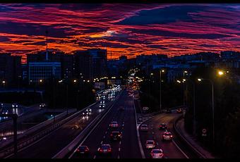 Sin embargo, aquellos trayectos a veces tienen una celestial recompensa. Una etérea indemnización con la que Madrid se anima a conciliar a sus habitantes más tenaces. Por ello algunos, en sus regresos del trabajo tienen la fortuna de admirar, por encima del volante, con una visión como la que os vemos en la postal de la semana. Una mirada casi apocalíptica, tomada desde la A3 en la que Madrid nos lanza un abrazo de bienvenida bajo un cielo encarando.