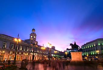 Resulta paradójico que, llamándose Puerta del Sol, seguramente el momento del día en el que más bonita luce es cuando el astro rey empieza a desaparecer y sobre el cielo de Madrid empiezan a chisporrotear unos destellos cuasi boreales. No han sido pocas las veces que, al anochecer, he avanzado por este torbellino vestido de plaza y he sentido como, durante unos fragmentos de segundo, la vida se desquebrajaba sobre mis hombros.