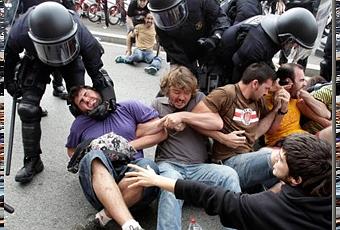 Y claro, después de lo de esta mañana en Barcelona y Lérida, la repercusión ha sido inmediata. La derecha crecida, ante la violenta carga que ha producido 90 personas heridas, al olor de la sangre, se ha desplazado al centro del movimiento, a la Puerta del Sol.