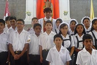 Quiero compartir con ustedes, que el pasado 8 de diciembre del 2010, 19 de mis alumnos recibieron por primera vez a Cristo Eucaristía. Después de prepararse en la catequesis, organizada en la institución educativa Simón Bolívar de Otuzco, durante siete meses, los menores escucharon temas de doctrina básica católica y participaron en el mes de noviembre de un retiro espiritual. Algunos de ellos recibieron, semanas antes, el Sacramento del Bautismo y otros, en la víspera de la celebración de su Primera Comunión, se confesaron obteniendo para sus pequeñas vidas el perdón Divino en el Sacramento de la Penitencia. La organización y desarrollo de la catequesis estuvo a cargo del Área de Educación Religiosa de la I.E. Simón Bolívar en coordinación la Parroquia Inmaculada Concepción de Otuzco.La ceremonia de la Primera Comunión, se realizó en el Santuario de la Inmaculada Virgen de la Puerta, fueron en total 107, entre niños y adolescentes, en su mayoría pertenecientes al grupo de la Catequesis Parroquial a cargo su asesor espiritual el Rv. P. Edgar Zapata CSsR, quien fue el celebrante, y su equipo de catequistas.