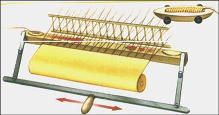 En 1826, un tejedor de 15 años, al frente de dos telares mecánicos podría hilar por semana 12 piezas semejantes; y algunos podrían hacer hasta 15.