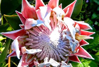 ¡Está abriendo la Protea Cynaroides! Más de siete meses cerrada y es ahora cuando despierta. ¡Bravo!
