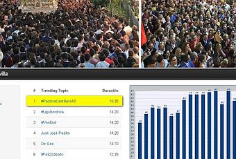 Un año más la multitudinaria procesión triunfal de la Divina Pastora de Cantillana se convirtió en protagonista en las redes sociales, ocupando el primer puesto en Twitter en Sevilla -durante más de quince minutos- en la madrugada del 9 de septiembre, siendo por tanto la noticia más comentada, bajo el hastag #PastoraCantillana18.