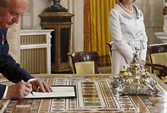 El miércoles 18 de Junio el propio Juan Carlos sancionó la última ley bajo su reinado, la de su abdicación, ley que después se encargó de refrendar el Presidente del Gobierno. El rey saliente sancionó y rubricó la ley de su propia abdicación y cuya publicación en el BOE y entrada en vigor se haría a medianoche. Tanto al inicio como al finalizar el acto sonó el himno de España. Emocionante el momento en que el todavía Rey de España abrazó a su hijo y le cedió el puesto que presidía el acto. Más emocionante si cabe fueron las muestras de cariño de un hijo hacia su madre y el de unas jovencísimas nietas hacia sus abuelos, las cuales hay que decir que cuidaron el protocolo en todo momento, siempre bajo la atenta mirada de su madre, Doña Letizia. Mucho se ha hablado y se ha especulado sobre la falta de afecto que demostró Juan Carlos hacia su nuera en este acto, pues se echó en falta un gesto de animosidad o cariño.