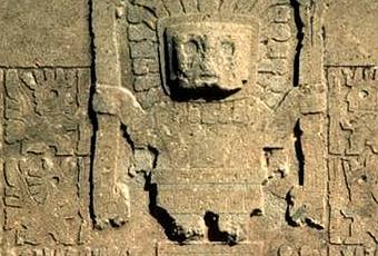 Entre los años 200 a.C. y 900 d.C., se desarrolló, cerca del lago Titicaca (en Bolivia), la ciudad de Tiahuanaco. Uno de los principales restos de esta antigua civilización andina es la Puerta del Sol, construida en el siglo IX. Aquí puedes ver la parte central de su dintel; sobre unos relieves geométricos, aparece la figura de un dios que lleva un tocado con cabezas de pumas.