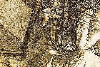 En 1514 el gran pintor alemán Alberto Durero creó un grabado sobre plancha, Melancolía I, uno de los tres que realizara ya entonces, y considerados además como sus mejores estampas maestras. De gran tamaño (234 x 189), Melancolía I es el grabado de Durero más misterioso y complejo que creó. Es una alegoría del genio más profano, con unos rasgos más intelectuales e imaginativos, dentro del mundo del Arte. En la obra se sitúa una figura alada -símbolo de la imaginación y la creatividad-, que representa al creador meditabundo, pensativo y triste; actitudes que se expresaban ya en los artistas, seres habitualmente melancólicos. La imagen de la melancolía aparece aquí absorta en el grabado, pero no ensimismada en una tarea que la ocupara, no, está absolutamente abstraída en su inactividad. Existen unos elementos en la obra de Durero que caracterizan, además, el momento hilvanado por la apatía y el abandono. Así, vemos una balanza, un reloj, un cuadro mágico de orden cuatro como un talismán -sus números, en cualquier dirección, siempre suman 34-, una escalera abandonada, un niño -infancia ingenua-, un perro dormido, un fondo de luz extraña.