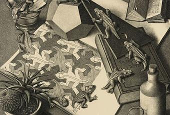 Escher: Reptiles - "La forma es un movimiento detenido"Es lo que venía a decir Ortega cuando afirmaba que “la forma es un movimiento detenido”. Es decir, que lo que ha llegado a ser es una interrupción en su camino hacia algo más. También E. M. Cioran: “El universo es una pausa del espíritu”. Incluso Unamuno gravitaba alrededor de esta misma idea cuando decía: “El espíritu dice: ¡quiero ser! Y la materia le responde: ¡no lo quiero!”. El espíritu es precisamente la parte de nosotros que nos mueve es pos del ideal, un ideal que siempre está más allá que la concreta realidad, que la materia que nos sirve de punto de partida. La vida es lo que invertimos en el esfuerzo de ir en pos de los ideales. Nuestra tendencia a exagerar, a redondear nuestra percepción de las cosas construyendo conceptos a los que referirlas es la misma tendencia que nos impide conformarnos con lo que materialmente son las cosas, y nos empuja a emplear la vida en empresas que estén al servicio de los ideales. Por eso dice Ortega: “La vida humana, por su naturaleza propia, tiene que estar puesta a algo, a una empresa gloriosa o humilde, a un destino ilustre o trivial. Se trata de una condición extraña, pero inexorable, inscrita en nuestra existencia”. Si faltara ahí afuera esa tarea a la que interiormente nos vemos compelidos, la vida se quedaría vacía, pues precisamente consiste en ese quehacer que nos saca de nuestra realidad inmediata –la que solo necesita de nuestra inercia, que es lo que en nosotros representa a la muerte–, que nos empuja fuera de lo que ya somos, en pos del ideal. “Vivir es ir disparado hacia algo, es caminar hacia una meta. La meta no es mi caminar, no es mi vida; es algo a que pongo ésta y que por lo mismo está fuera de ella, más allá”.