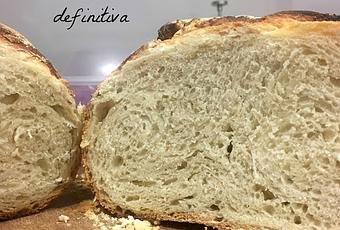 La primera vez que lo hice la verdad es que todos nos quedamos en casa alucinados. El resultado es un pan tipo chapata con la corteza super crujiente y un miga muy muy rica. La segunda vez, también salió buenísimo pese al cúmulo de adversidades que se fueron sucediendo (todo debido a mi torpeza, no a la receta). Así que es una receta a prueba de bombas.