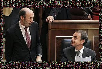 Rubalcaba pasa junto a Zapatero, en el debate sobre
