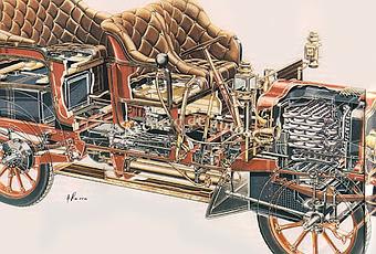 El modelo de la transparencia era un automóvil a vapor de la marca francesa Serpollet, y del año 1906. Léon Serpollet fue el fundadorde esta marca en el año 1899. La ilustración nos muestra las entrañasde cómo era un auto a vapor, de principios del siglo pasado.