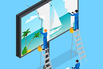 Illustration Of Workers Applying A Large Format Print On A Billboard technolynx
