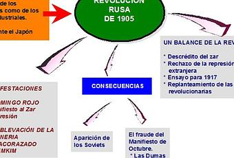 Las causas de esta revolución hay que buscarlas en la situación social, económica y política rusas (ya descritas en entradas anteriores). La derrota ante Japón fue el detonante. Hubo varias huelgas y protestas de estudiantes, obreros y soldados. La revolución fue más bien un movimiento espontáneo, la participación de las fuerzas de izquierda fue tardía y nunca decisiva. Se puede considerar un ensayo de la gran revolución de 1917 ya que los factores determinantes son casi los mismos. “La Revolución de 1905 no fue sólo el ensayo general de 1917 sino también el laboratorio del cual salieron todos los agrupamientos fundamentales del pensamiento político ruso, donde se conformaron o delinearon todas las tendencias y matices del marxismo ruso”. (Trotsky) La Revolución tuvo dos manifestaciones: el Domingo Rojo y la sublevación de la marinería del acorazado Potemkin