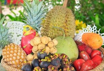 De esta hermosa cesta, la única fruta que hay que comer con precaución es el duriano pues tiene un fuerte olor y sabor que puede resultar desagradable y es mejor comerlo cocinado, pero nos puede servir de ejemplo para ilustrar la importancia de la variedad.
