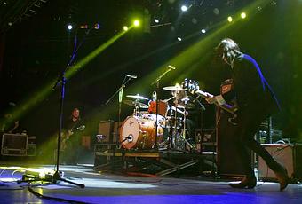 Tras el sound check llegaba el momento de Band of Skulls, llegaban con el ritmo más potente desde el primer acorde. Un directo de algo más de quince temas. Un directo conciso en el que el trío no dejó de tener detalles con el respetable. Russell y Emma fueron los más agradecidos, en especial el guitarra, llegando a estar al borde del escenario en más de cinco ocasiones. Matt fue el encargado de liderar la ofensiva sonora con una batería potente mientras Emma reforzaba este concepto sonoro, cosa que al cantar se notaba todavía más. Russell hizo de frontman perfecto en lo referido a la guitarra y voz. La banda hizo una referencia a su anterior paso por Madrid y a la noche en Barcelona. En lo referido al set list, no faltaron las continuas referencias a su disco Himalayan, canciones como Brothers and sisters, Asleep at the wheel, Cold sweat e Himalayan no podían faltar. Personalmente me faltó algún matiz en el set list como I Know what I am y el peso de este tema en el mismo... pero supieron hacerse dueños del escenario en los cambios de voz y en saber levantar al respetable. Un directo muy potente donde vimos en el cierre el tema más esperado por muchos, Hoochie Coochie. A modo de resumen se puede decir que la pegada de la banda en un directo como este, había sido más que perfecta. Una banda que se jugó todo a una carta y que no salió mal parada en lo referido al feedback. Bandas con esta esencia y calor sobre el escenario quedan pocas y se deben cuidar. La banda prometía lo que ha cumplido.... un sonido potente y lleno de matices que levantasen al respetable sin problemas... la verdad es que ganaron protagonismo en una noche única... esperamos verles pronto en Madrid.