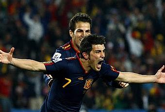 Villa, eufórico, festeja su gol ante Cesc -EFE.