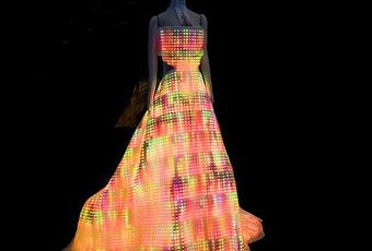 Pues este es el último grito de moda, se trata de un traje de noche confeccionado con luces de LED que permite mostrar tweets en tiempo real.