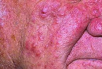 color rojo y puede ocasionar hinchazón y úlceras cutáneas que lucen como acné.