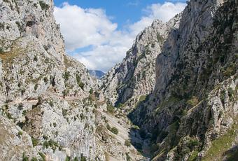Las montañas son el diario de la tierra, en ellas está escrito su pasado, su presente y si se sabe leer entre líneas también podemos prever el futuro. Cuando nos encontramos con un desfiladero estamos viendo el poder de erosión del agua, la paciencia de los años frente a la dureza de la roca. La ruta del Cares transcurre por la garganta del rio Cares que desde tiempos inmemoriales moldea la piedra caliza para seguir su curso imparable. A un lado la piedra y al otro el barranco, en el fondo se escucha el río y el camino entre Poncebos y Caín transcurre tranquilo. Una ruta que comienza en Asturias y termina en León, o al revés. Once kilómetros que fueron construidos por el hombre en este enclave natural para mantener el canal de la central hidroeléctrica de Camarmeña-Poncebos. El tiempo del agua para modelar y el del hombre para construir es incomparable. Me imagino a los obreros de principios del siglo XIX colgados con cuerdas para acceder al cañón, escuchando el estruendo de las detonaciones de dinamita. También me imagino el paisaje hace millones de años cuando no existía el cañón y esto sería llano. Todo este pasado para poder disfrutar hoy de un paseo maravilloso ¿me pregunto cómo será dentro de 100 millones de años?