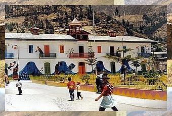 Llegamos a este bello y ordenado pueblo productor de manzanas cuyas casas y lugares públicos han sido adornadas con hermosos dibujos (ángeles, flores, mujeres andinas, niños, etc.) por iniciativa de los vecinos en alianza con una ONG lo que le da una imagen de fantasía. Caminaba por sus calles como si estuviera perdido en un gran retablo ayacuchano, en un mundo de fantasías, sólo faltaba que Hansel y Gretel aparecieran. El clima es cálido y la gente amable.