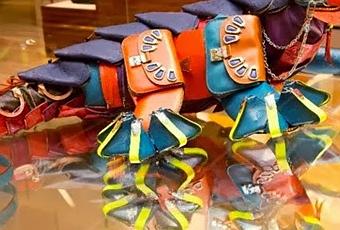 Billie Achilleos desde hace tres años colabora con Louis Vuitton creando un bestiario de animales realizados a partir de bolsos y pequeña marroquinería de la firma francesa.