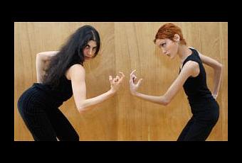 Foto de El País. En la foto la modelo fallecida Isabel Caro junto con una actriz en una representación teatral.