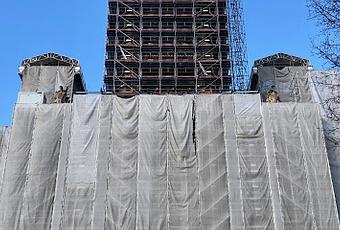 Lo que os muestro en la fotografía es la Iglesia de la Santísima Trinidad, en París, una iglesia en obras desde hace algún tiempo y por un período que promete no ser corto... Ahora bien, las obras ya no suponen un problema mayor para aquellos turistas que pudieran estar interesados en contemplar la fachada y/o el interior del edificio...