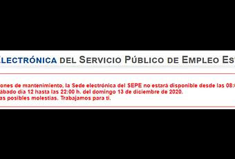 El SEPE ha avisado desde las redes sociales y la propia sede electrónica que, por cuestiones de mantenimiento, la Sede electrónica del SEPE no estará disponible desde las 08:00 horas del próximo sábado día 12 hasta las 22:00 horas del domingo 13 de diciembre de 2020.