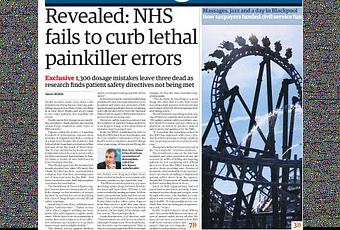Supongo que el verano corre igual en toda nuestra Europa incluso en Gran Bretaña, The Guardian, uno de los periodicos más influyentes del Reino Unido, publica hoy en portada un llamativo titular relacionado con la seguridad del paciente bajo el título "El NHS no logra reducir los errores letales en la administración de analgésico" y el subtitulo "1300 errores de dosificación dejan tres muertos, la investigación revela que las directivas de seguridad del paciente no se están cumpliendo" desgrana (desde mi punto de vista con un poco de amarillismo) toda la noticia.