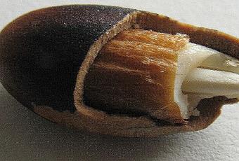 Semillas de gimnospermas: pino (izquierda) y cicas (derecha)