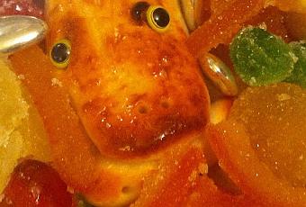 La verdad es que estaba muy bueno, todo hay quie decirlo, menos las frutas escarchadas, que menos mal que mi madre es FAN absoluta, y se las come ella. Por cierto, los ojos de la serpiente NO se comen. Y el muñequito del rosco, le tocó a la menda lerenda, asi que el año que viene, a B le toca ira a comprarlo.