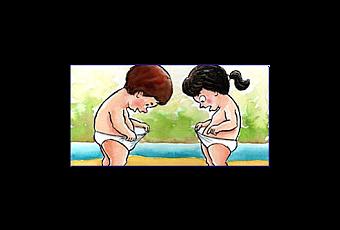 - Cuando se les quita el pañal: Se les despierta la curiosidad hacia sus propios genitales, de otros niños y de sus papás. No se me olvida una anécdota de cuando estaba de tutora en una clase de 2-3 años que una niña observo cómo un compañero estaba haciendo pis en el retrete sin sentarse y que tenía colita. Cuando el niño se fue ella se puso delante del retrete y empezó a buscarse el pene para hacer lo mismo. De está manera vió que ella era diferente y se lo expliqué. Ella debía hacer pis sentada. Es el momento en el que se meten con nosotros en el baño, ven cómo hacemos pis... También se autoexploran y se tocan para producirse placer. A veces para tranquilizarse, simplemente porque se tocan y se sienten bien... ¡No hay que asustarse ni pensar que están haciendo nada malo!!! Debemos dejarles porque forma parte de su desarrollo...siempre y cuando no interfiera en otras actividades: como la comida ( cuando les aburre hay niños que lo hacen)...