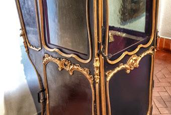 Antes de la intervención, los deterioros impedían su exhibición. A destacar los graves desajustes, pérdidas estructurales y decorativas, y la abundante suciedad. Las sustancias grasas que invadían el cuero y la talla. Manchas, roces y pérdidas por todo el revestimiento
