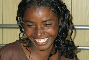 Asnakech nos regala su sonrisa al llenarse de la Alegría de ver renacer de la hambruna a su hija Kidane.