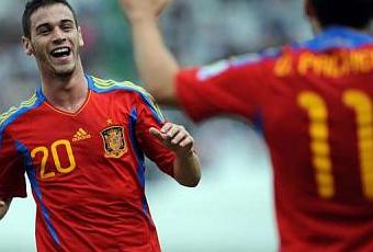 En el primer minuto del partido España ya se puso por delante en el luminoso. Álvaro Vázquez cedió atrás en la frontal del área para que Sergio Roberto marcara el primero de la selección. Era la primera jugada de peligro y el combinado nacional ya mandaba.