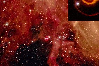 En febrero de 1987 llegó a la Tierra la luz de la supernova a la que se llamó SN 1987A, una luz que tardó unos 170.000 años en arribar a nuestro planeta desde la Nebulosa de la Tarántula situada en la Gran Nube de Magallanes una galaxia enana cercana a la nuestra: la Vía Láctea. Se cree que después de la explosión caben dos posibilidades: que el núcleo de la estrella, una supergigante azul, colapsase hacia una estrella de neutrones o hacia un agujero negro.