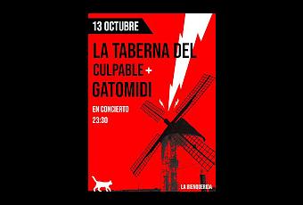 La taberna del culpable presentarán sus canciones en La Bienquerida y será una ocasión de sentir lo nuevo que tienen que mostrar para conquistarnos sonoramente y será un show en el que se unirá Gatomidi para jugar en casa y mostrar este directo que sigue creciendo.