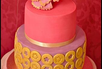 Este año, lo tenían muy claro. La verdad es que Violeta tiene bastante claro todos los años qué elementos tiene que tener la tarta de su cumple! Y este año, como se va haciendo mayor, quería combinar los colores, rosa, violeta y dorado con una gran flor encima.