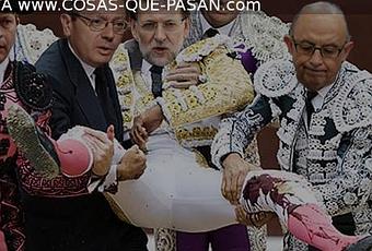 Sus peones de confianza, como sus picadores Luis de Guindos, “Chiquito de Bankia” o Cristóbal Montoro, “El Orejas”, no paran de barrenar al noble “Pueblo” que ya no tiene fuerzas ni para embestir.