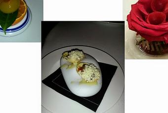 Versailles ( una rosa natural, pero los pétalos del centro, son los que se comen y son pétalos de manzana) viéndola parece una autentica rosa toda ella.