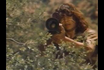 Si el cine en su conjunto fuera un cuerpo humano y cada película formara parte de un órgano o debiera cumplir una función fisiológica determinada, Thunder, bodrio dirigido por el italiano Frabrizio de Angelis en 1983, sería con toda probabilidad… un pedo. Es lo mejor que puede decirse de este truño italiano filmado en localizaciones del Oeste americano (distintos puntos de las reservas de los indios navajos en Arizona) que tiene al joven de las greñas de diseño que en la foto sostiene tremendo escopetoncio (parece una cámara con enorme objetivo para sacar fotos a pie de pista en Roland Garros, pero no, escupe granadas del tamaño de un melón de Villaconejos, o de Aragón, que son igual de buenos, o hasta mejores…) como protagonista absoluto. Criatura monstruosa surgida del “fenómeno emulación”, parida (nunca mejor dicho) al calor del tremendo éxito de Acorralado (Ted Kotcheff, 1982), primera parte de las andanzas del John Rambo de Sylvester Stallone, ya desnaturalizada en su conclusión y convertida en parodia de sí misma y en pura propaganda política en sus secuelas, Thunder sigue más o menos las mismas líneas argumentales y narrativas, casi se diría que incluso estéticas más allá de la precariedad de medios, que la película de Stallone, si bien en un tono y un ambiente de cutrez intrínseca que da vergüenza ajena.