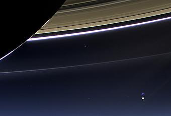 Esta fotografía parece irreal. Se trata de la Tierra (flecha) vista desde Saturno a 1.440 millones de kilómetros de distancia. Tomada por la nave Cassini de la NASA, que despegó en 1997.