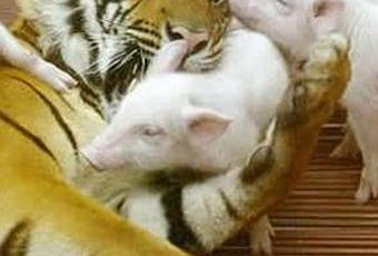 No sabían que iba a pasar.... así es que envolvieron a los cerditos, de unos pocos días, en "piel de tigre" y los colocaron alrededor de la tigresa... Luego de acercarlos a su nueva madre, grande fue la sorpresa de todos, al comprobarse que el amor de una madre se demuestra en de distintas maneras, en distintas circunstancias y en momentos inimaginables.
