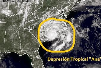 En esta nueva noticia les vamos a informar que la tormenta tropical "Ana", el primer sistema con nombre de la Temporada de Huracanes del Atlántico 2015, se debilitó a depresión tropical este domingo tras tocar tierra en Carolina del Sur, aunque un fuerte oleaje e inundaciones todavía amenazan las costas del estado ubicado en el este de Estados Unidos. Ana registraba vientos máximos sostenidos de 55 kilómetros por hora y se encontraba estacionada 45 kilómetros al norte de Myrtle Beach (Carolina del Sur), informó en su último boletín el Centro Nacional de Huracanes, con sede en Miami.
