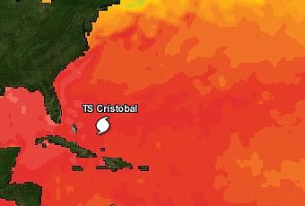 Otra información importante para mencionar es que el centro del sistema pasará al este del centro de Bahamas durante las próximas 24 a 36 hs, descargando mucha cantidad de lluvia con el riesgo de inundaciones repentinas, en las Islas Turcas y Caicos y el sudeste y el centro de Bahamas por lo menos hasta el martes 26 de agosto.Los desprendimientos nubosos de "Cristobal" todavía siguen descargando lluvias fuertes en el centro y el oeste de República Dominicana, Haití y el este de Cuba.