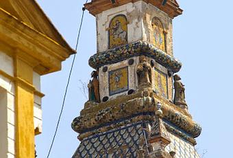 La cara norte de la torre de la Iglesia de la Caridad es la que tiene de frente al edificio de las Atarazanas. La parte visible es la de los penúltimo y último cuerpos.